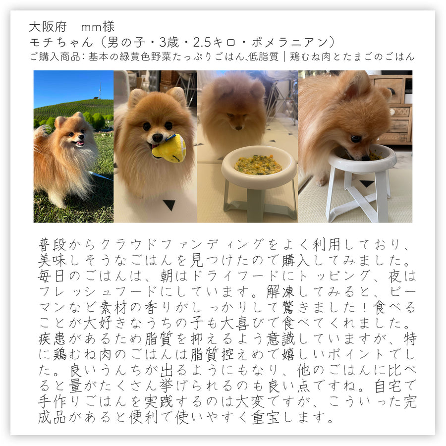 人と犬では一日に必要な栄養の量やバランスが異なるため犬用に設計したものを使用してください。